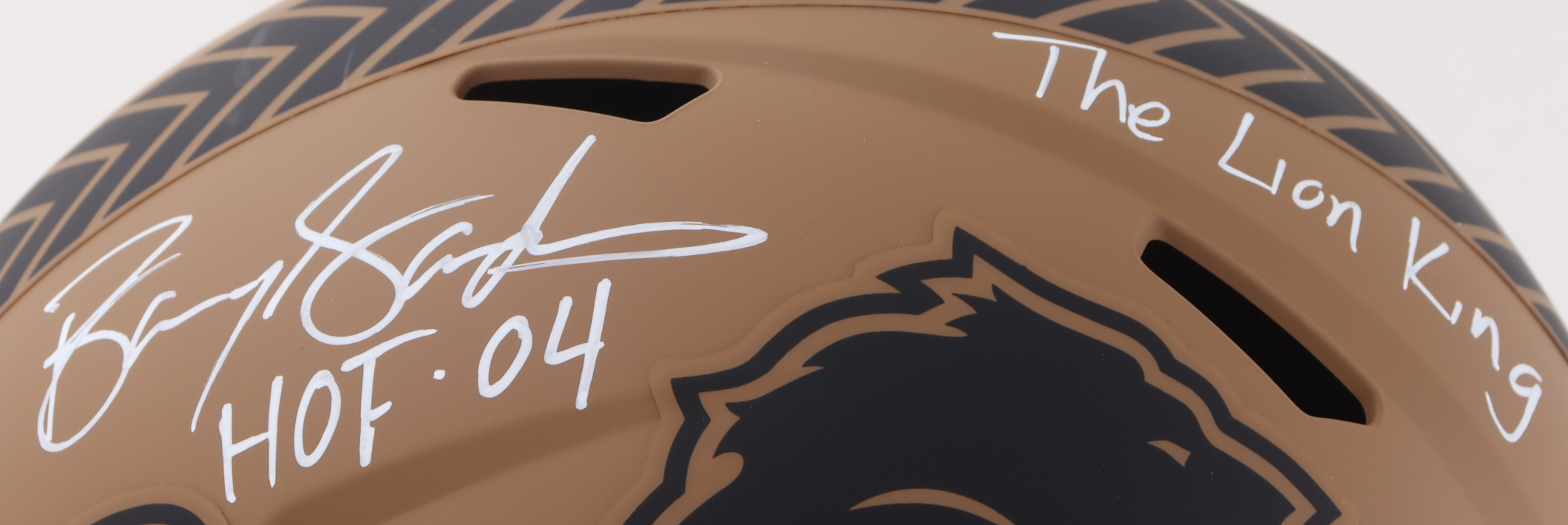 Barry Sanders Signed Lions Full-Size 2023 Salute to Service Alternate Speed Helmet Inscribed "HOF 04" & "The Lion King" (Schwartz)