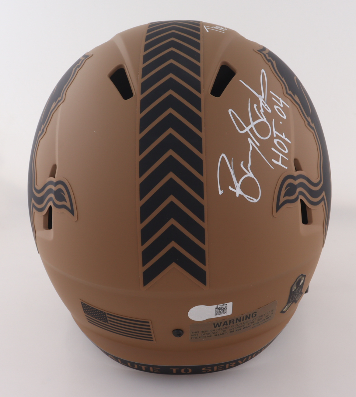 Riddell Detroit Lions Full-Size 2023 Salute to Service Alternate Speed Replica Helmet. Hand-signed and inscribed by Barry Sanders (HOF).
