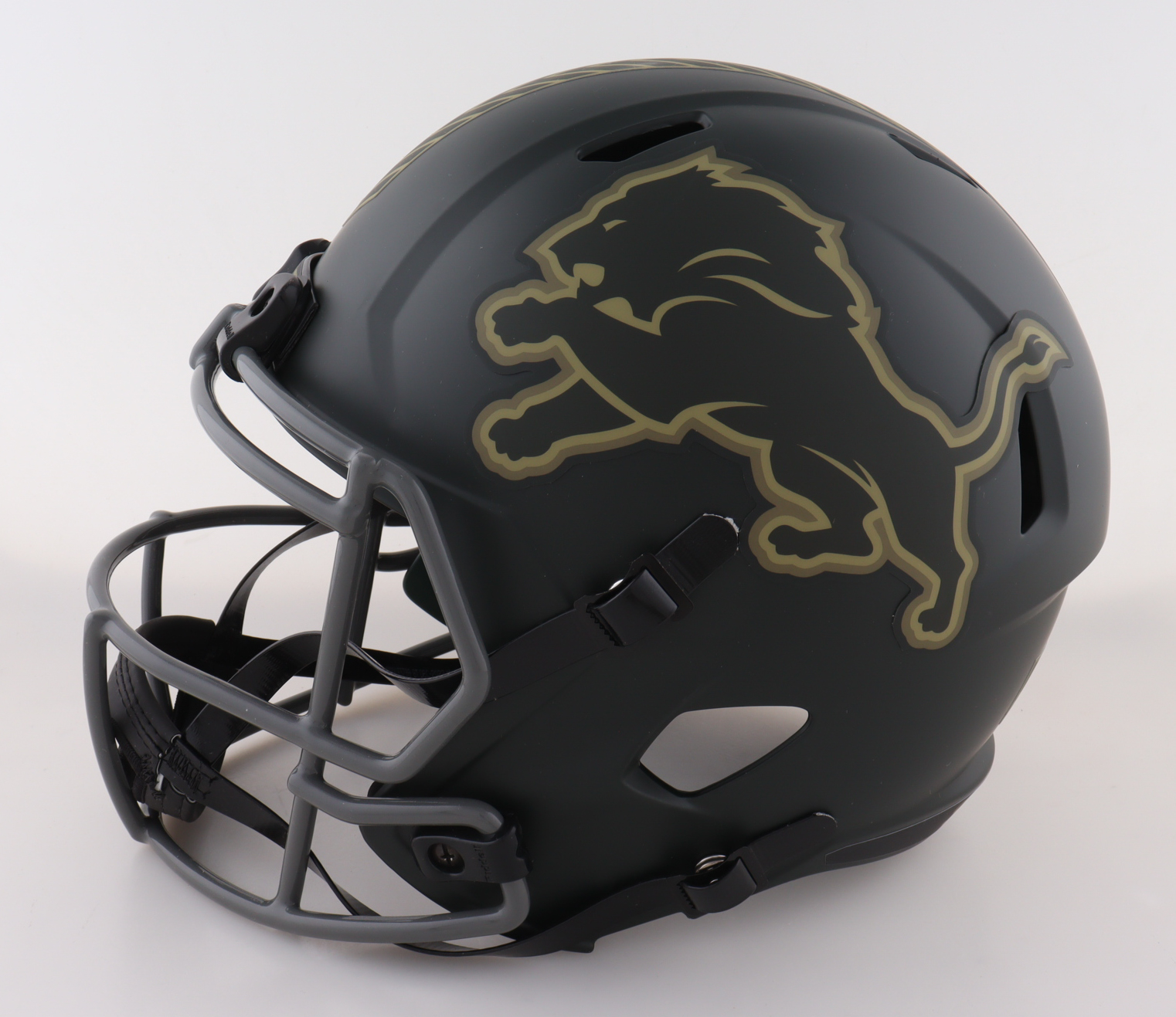 Riddell Detroit Lions Full-Size 2025 Salute to Service Alternate Speed Replica Helmet. Hand-signed by Barry Sanders (HOF).