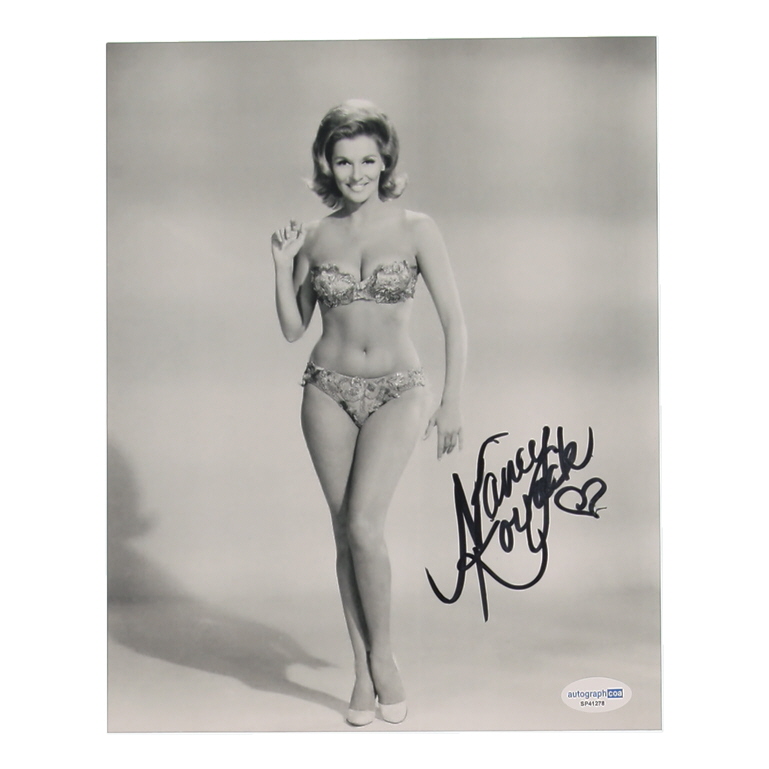 Photo measures 8" x 10" in size and has been hand-signed by Nancy Kovack.