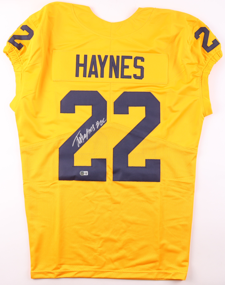 Custom jersey with everything sewn on, size XL. Hand-signed by Justice Haynes.