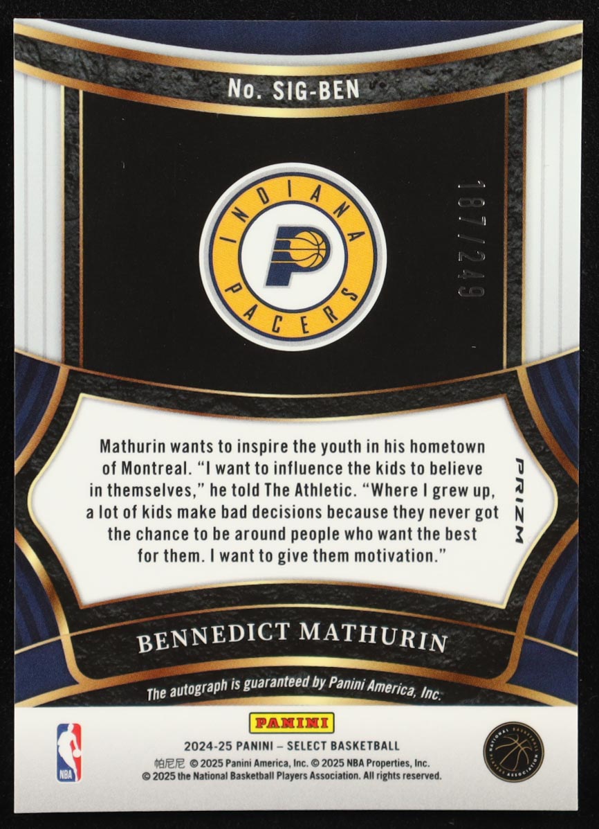 Bennedict Mathurin 2024-25 Select Signatures #15 #187/249