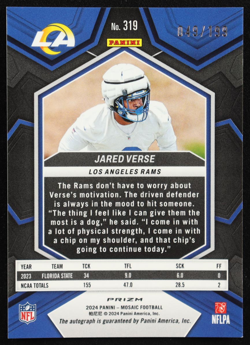 Jared Verse 2024 Panini Mosaic Rookie Autographs Mosaic Red #319 RC #049/199