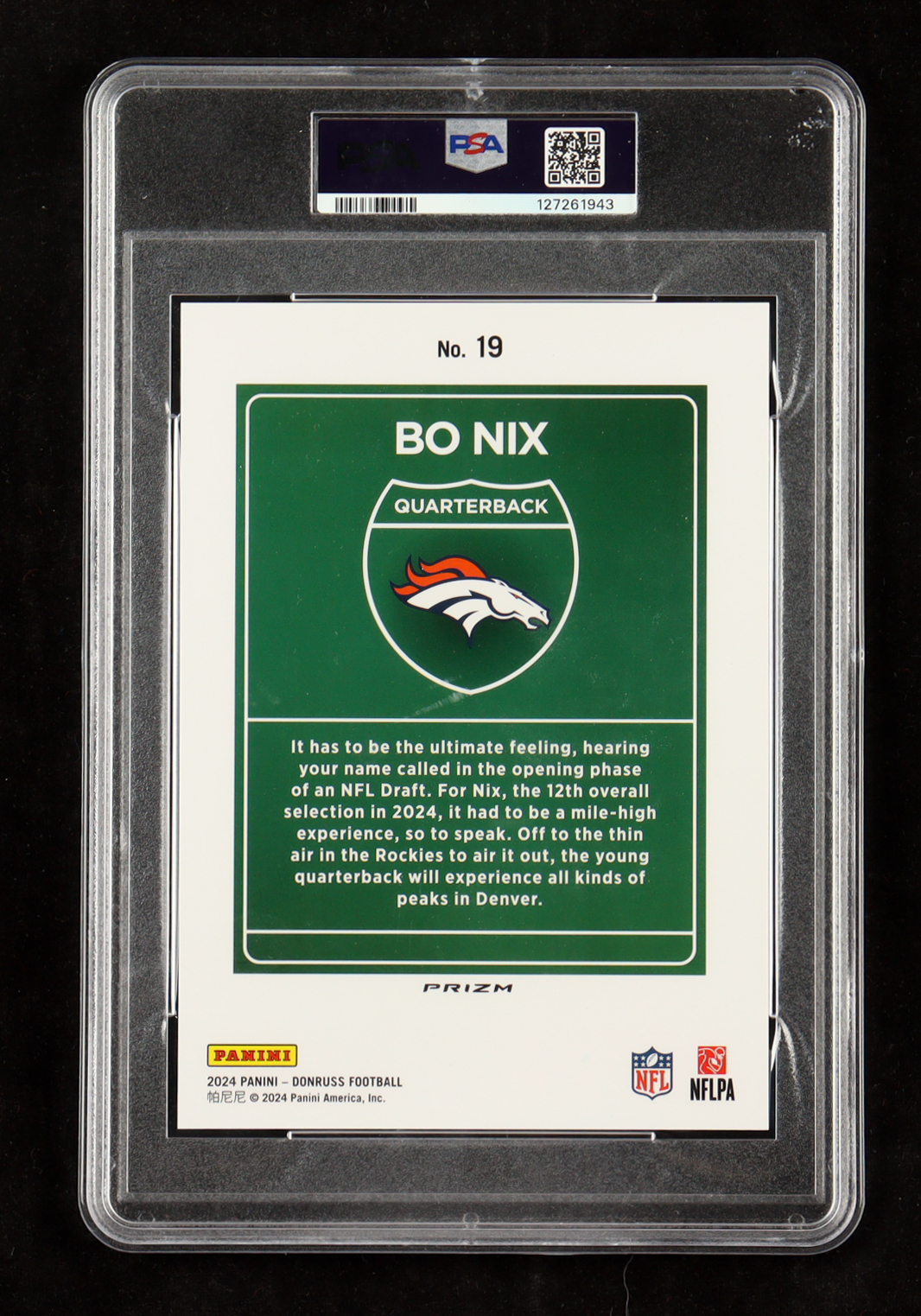 Card has been hand-signed by Bo Nix (Denver Broncos). Please see photos for more details regarding the condition of the card.