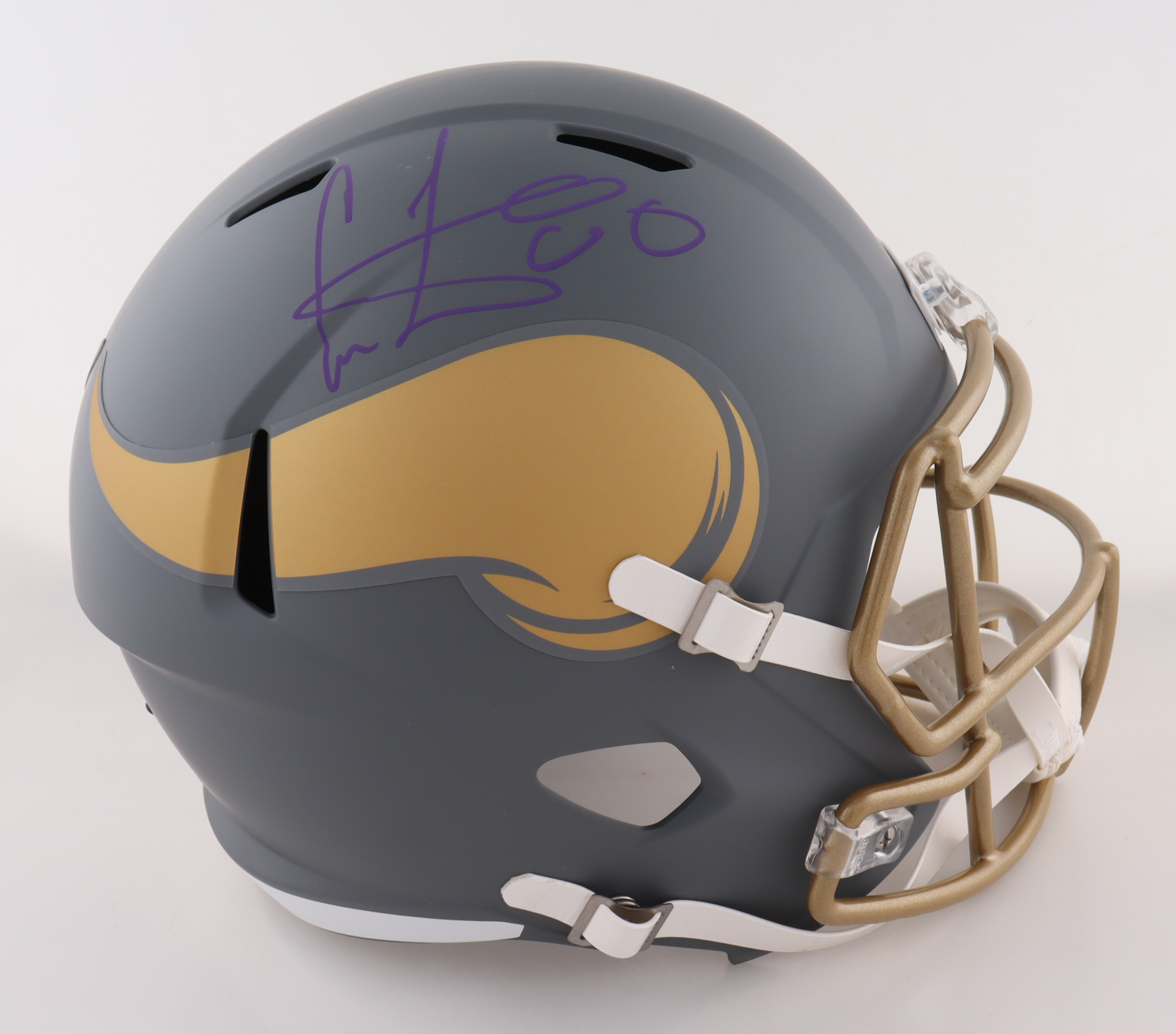 Riddell Minnesota Vikings Full-Size Slate Alternate Speed Replica Helmet. Hand-signed by Cris Carter (HOF).