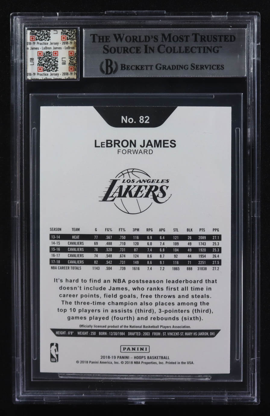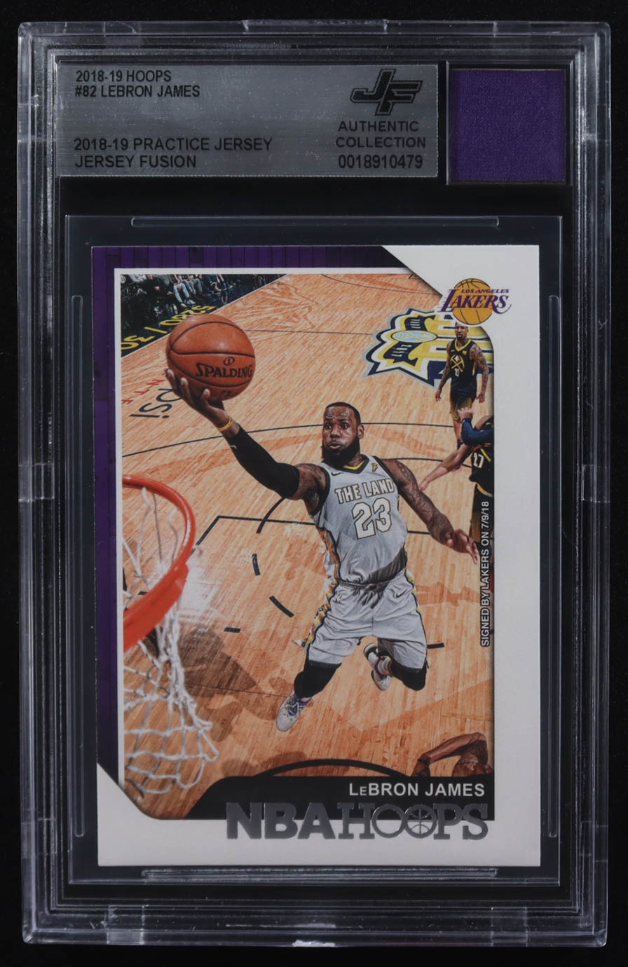 LeBron James 2018-19 Hoops #82 With Practice Jersey Swatch (BGS)