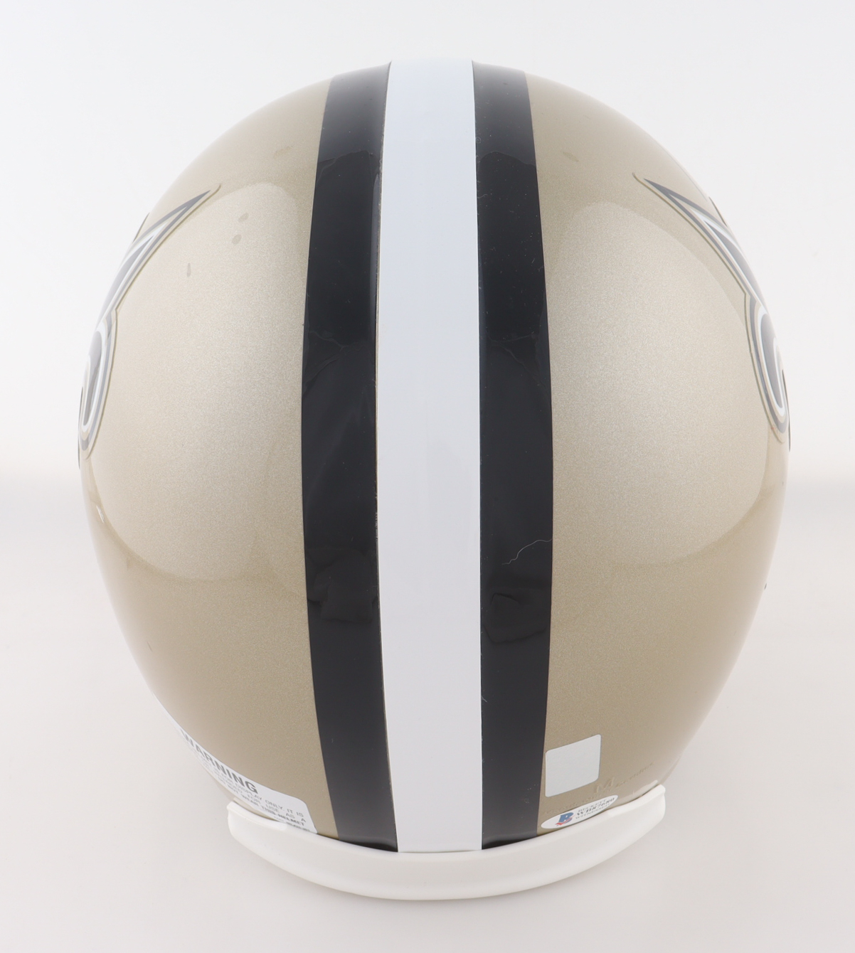 Riddell New Orleans Saints Full-Size Replica Helmet. Hand-signed and inscribed by Drew Brees. See photos for more details.