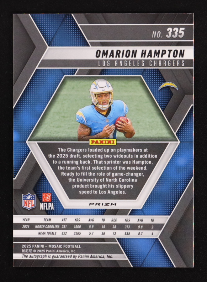 Omarion Hampton 2025 Panini Mosaic Rookie Autographs Mosaic #335 RC