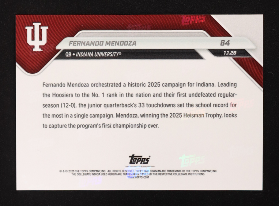 Fernando Mendoza 2025 Bowman University Now #64 RC