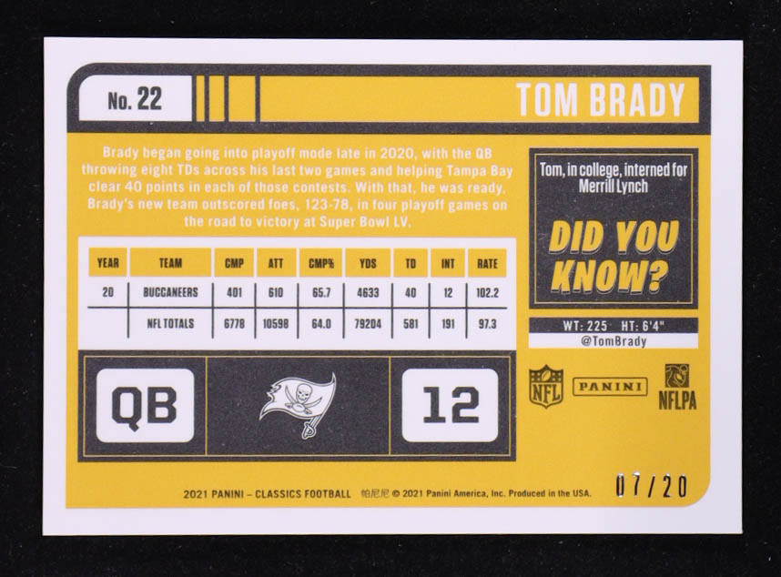 Tom Brady 2021 Classics Premium Edition Timeless Tributes Green #22 #07/20