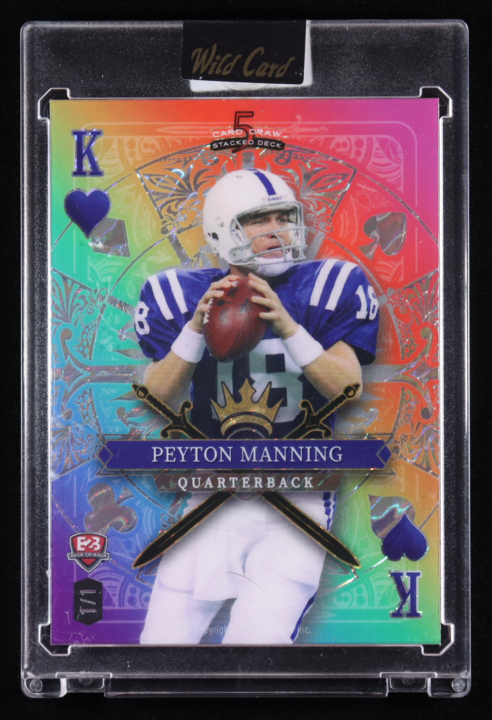 Peyton Manning / Drew Brees 2024 Wild Card 5 Card Draw Back 2 Back King of Hearts Oil Spill Rainbow #PMDBNB2B #1/1