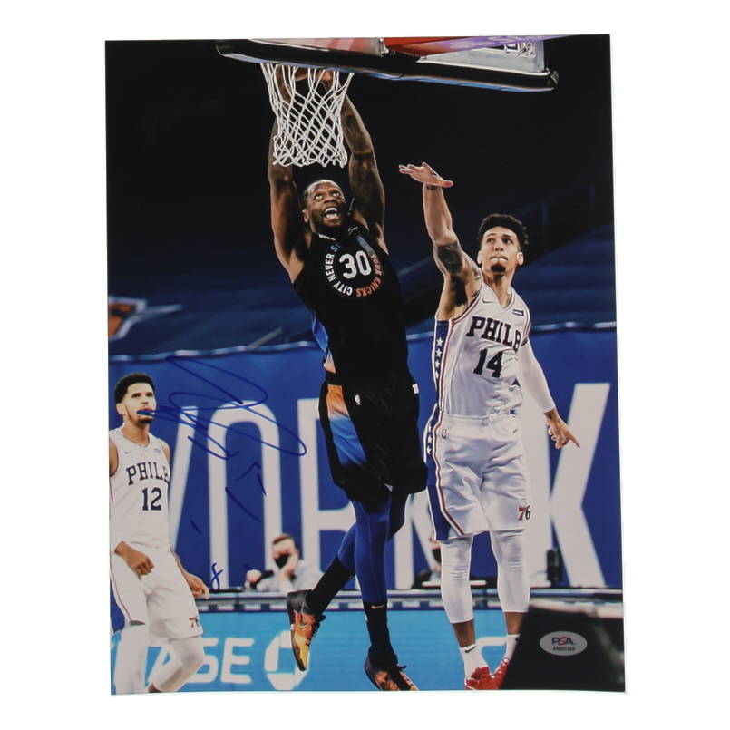 Photo measures 11" x 14" in size and has been hand-signed by Julius Randle (New York Knicks).