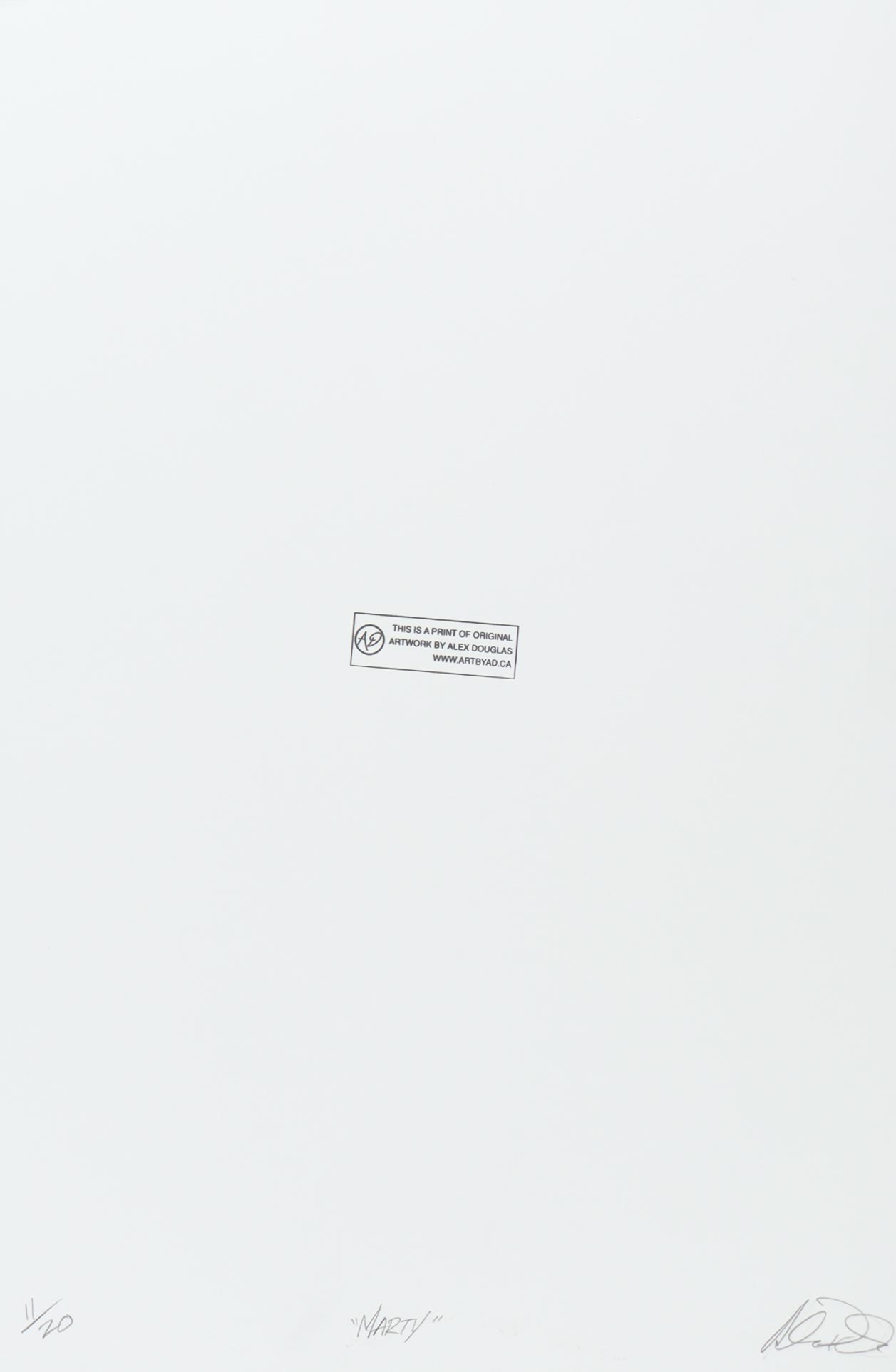 Lithograph measures approximately 12" x 18" in size. Hand-signed by Martin Brodeur (NEw Jersey Devils). Has also been signed by the artist Alex Douglas. Limited edition numbered #11/20.