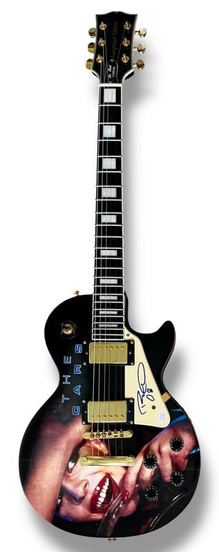 Custom Autograph Edition Les Paul style electric guitar measures approximately 39" in length and has been hand-signed on the pickguard by Ric Ocasek (lead signer).