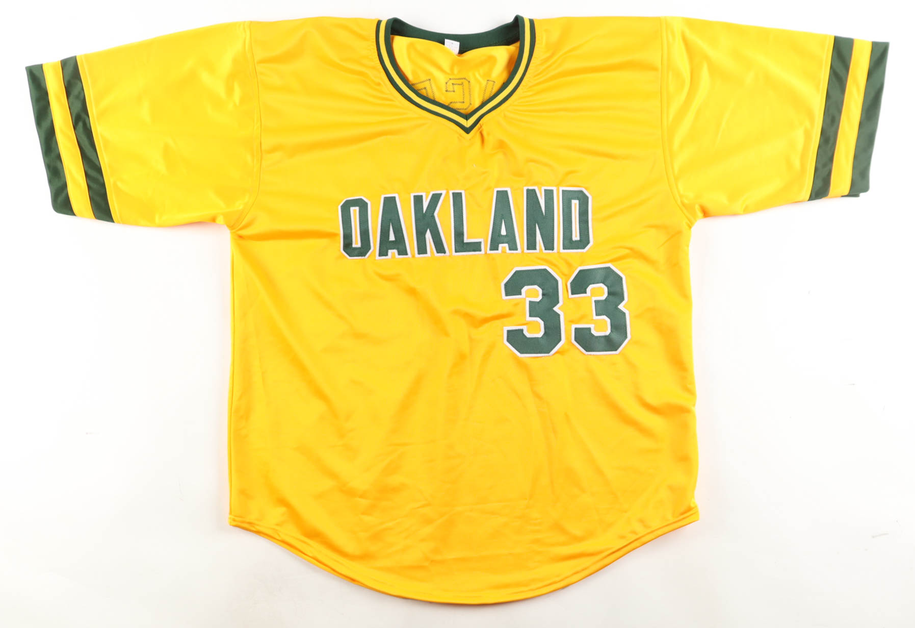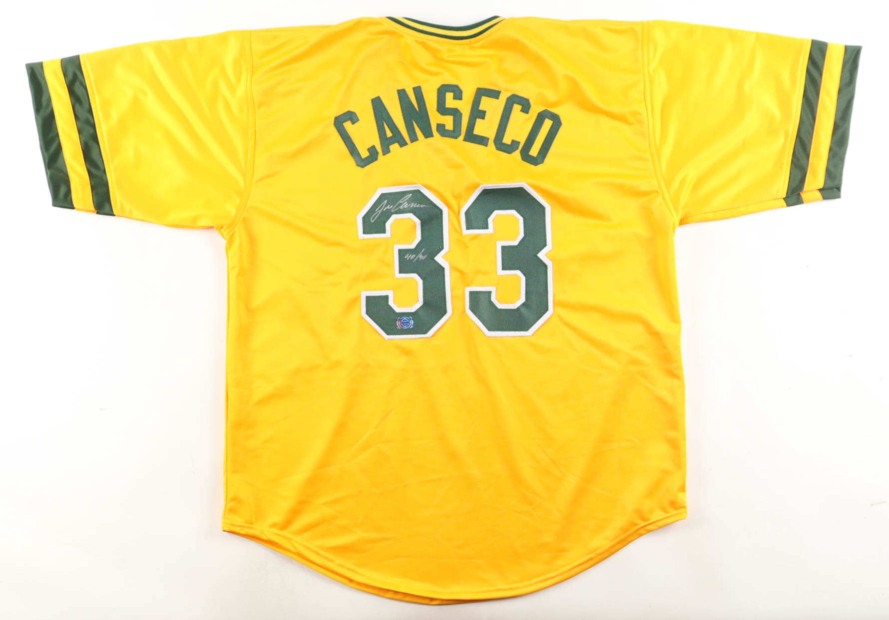 Custom jersey with everything sewn on, size XL. Hand-signed by Jose Canseco (Oakland Athletics).