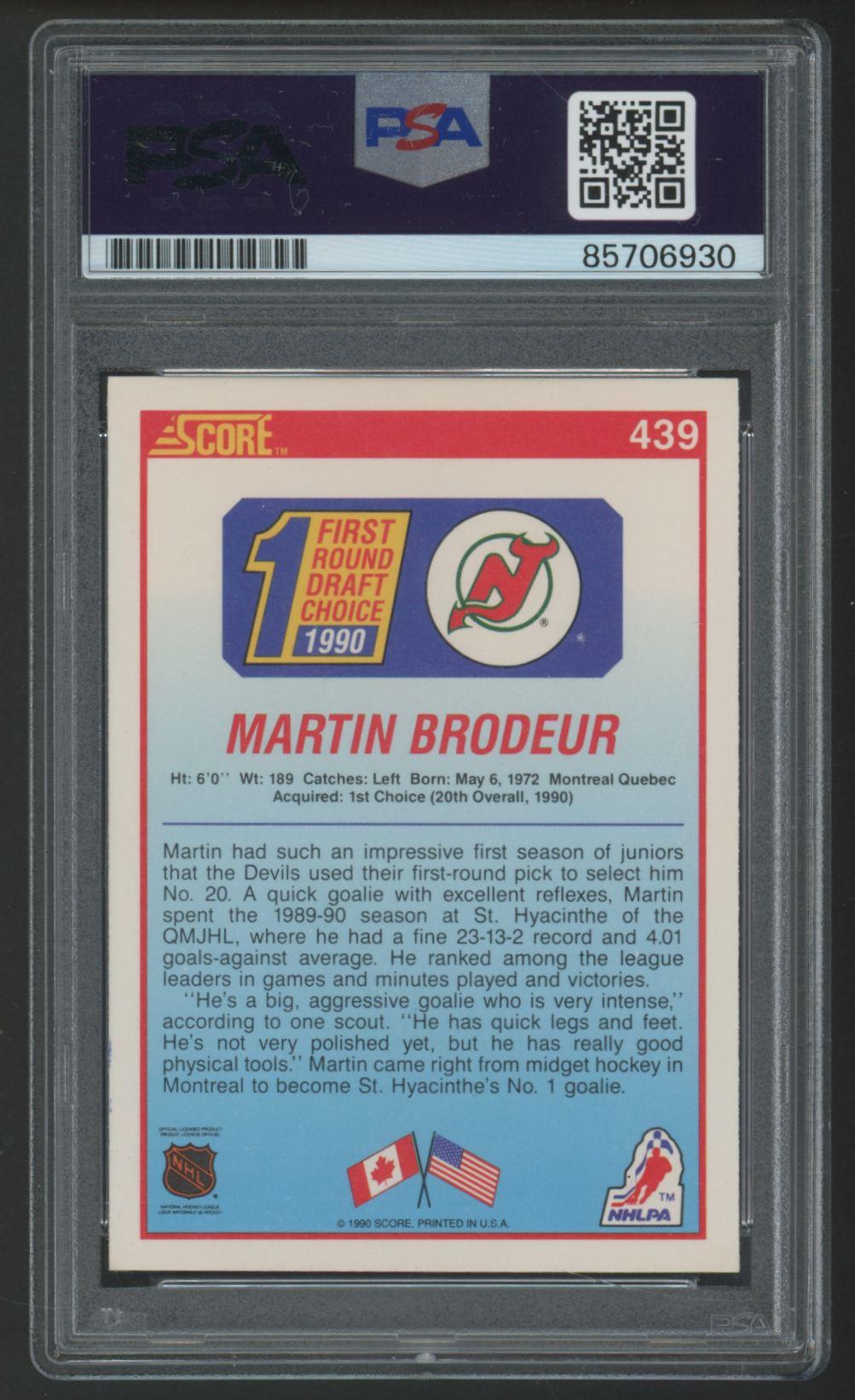Martin Brodeur Signed 1990-91 Score #439 RC (PSA)