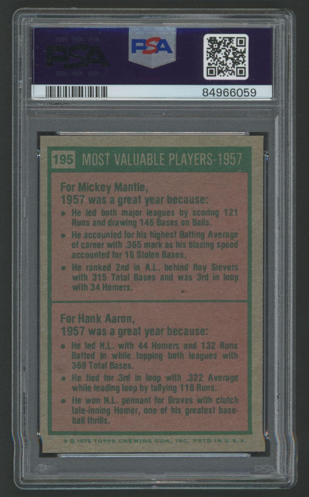 Mickey Mantle / Hank Aaron 1975 Topps / 1957 MVP's #195 (PSA 7)
