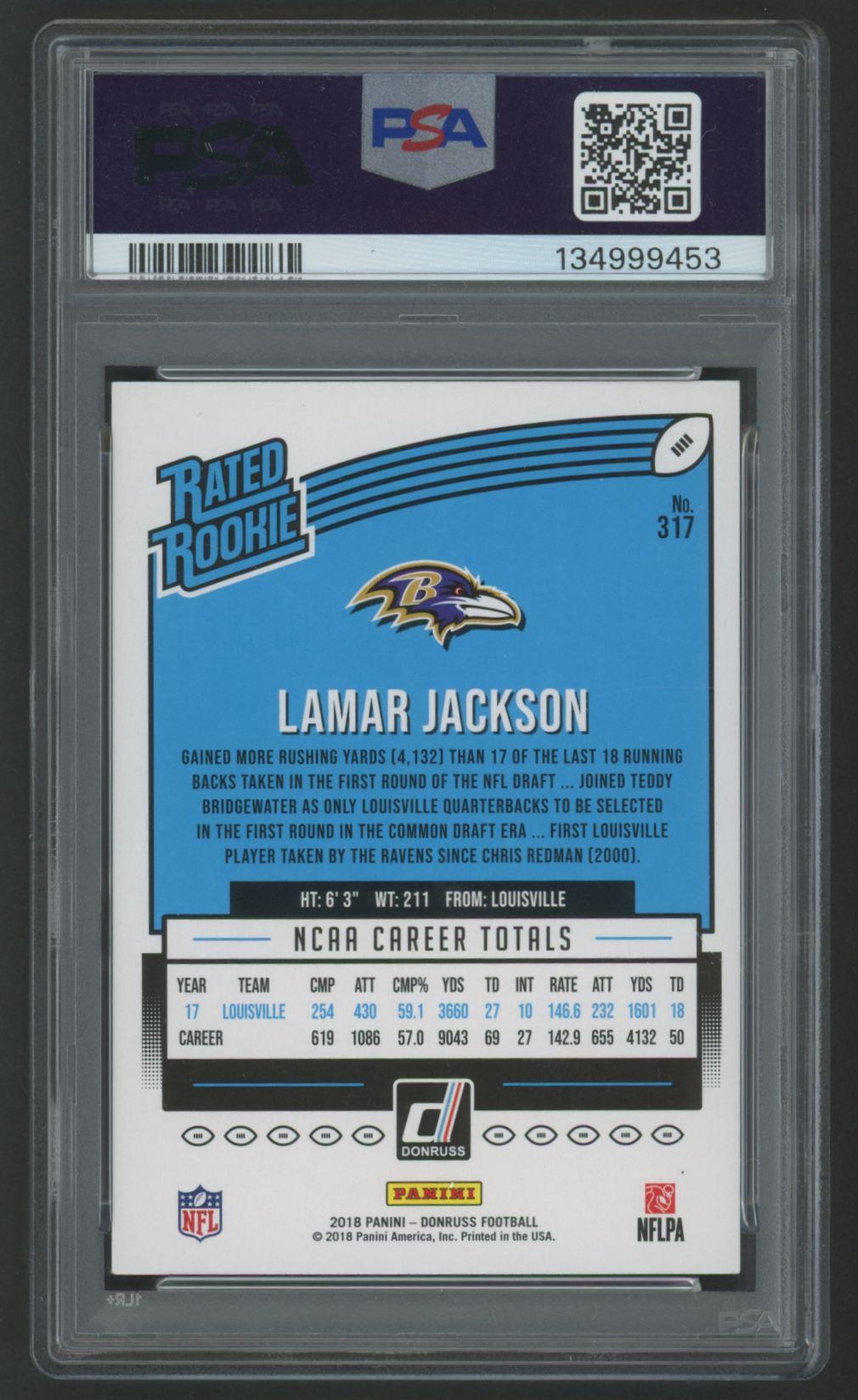 Lamar Jackson 2018 Donruss RR #317 RC (PSA 9)
