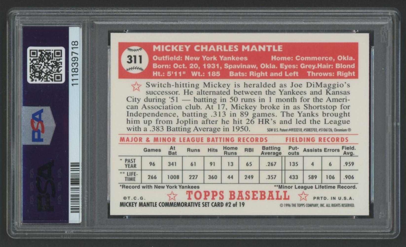 Mickey Mantle 1996 Topps Mantle Finest / 1952 Topps #2 (PSA 8)