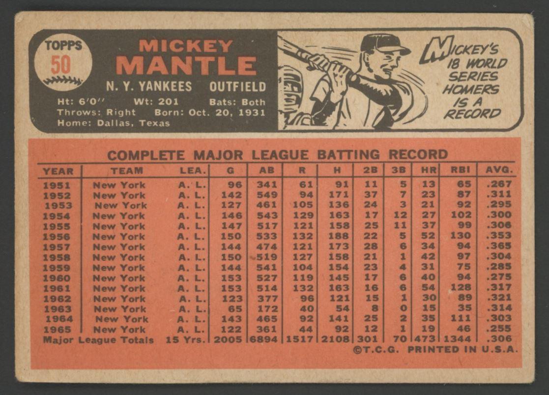 Mickey Mantle 1966 Topps #50 DP