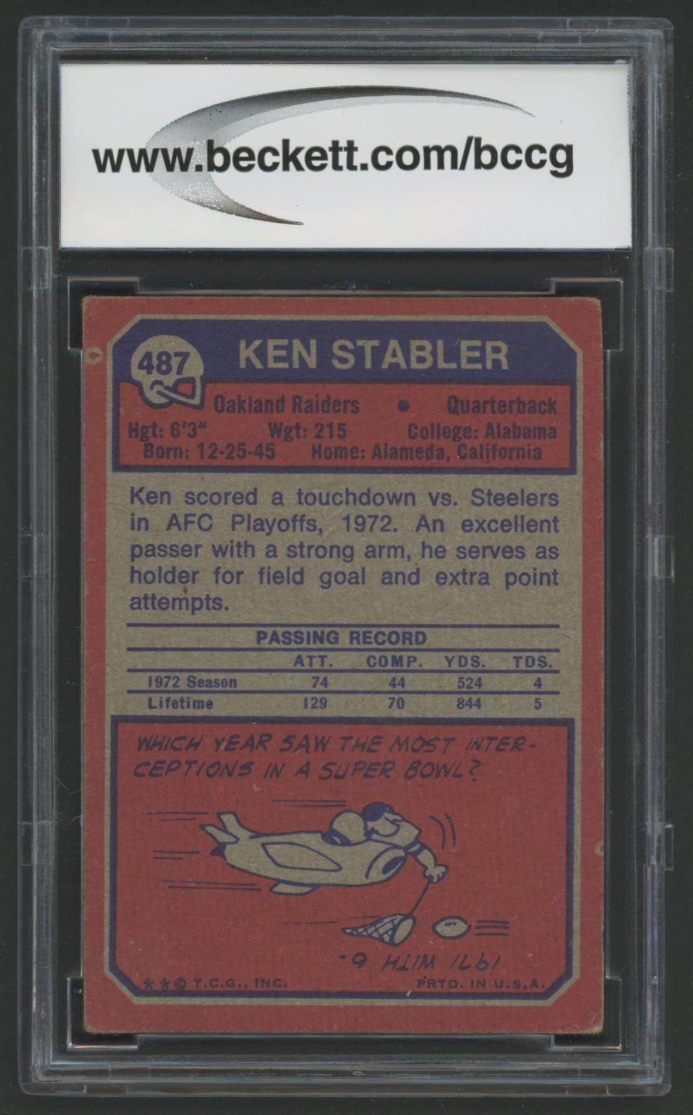 Ken Stabler 1973 Topps #487 RC (BCCG 7)
