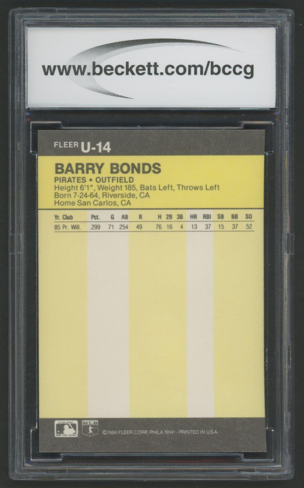 Barry Bonds 1986 Fleer Update #U14 XRC (BCCG 10)