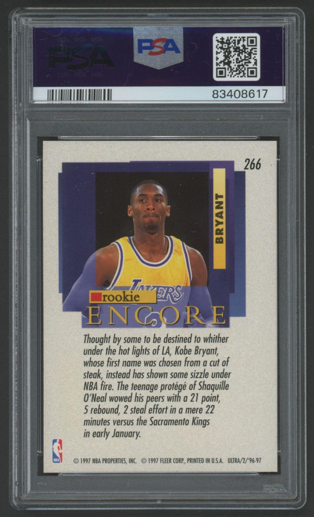 Kobe Bryant 1996-97 Ultra #266 Rookie Encore RC (PSA 9)