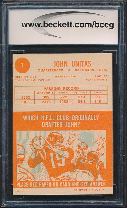 Johnny Unitas 1963 Topps #1 (BCCG 9)