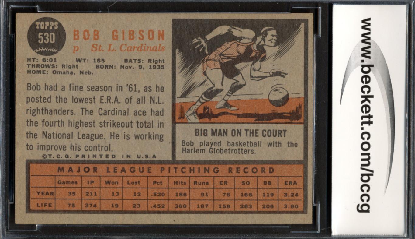 Bob Gibson 1962 Topps #530 SP (BCCG 8)