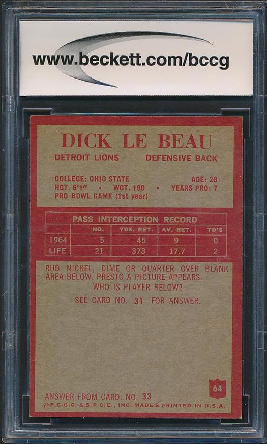 Dick LeBeau 1965 Philadelphia #64 RC (BCCG 9)
