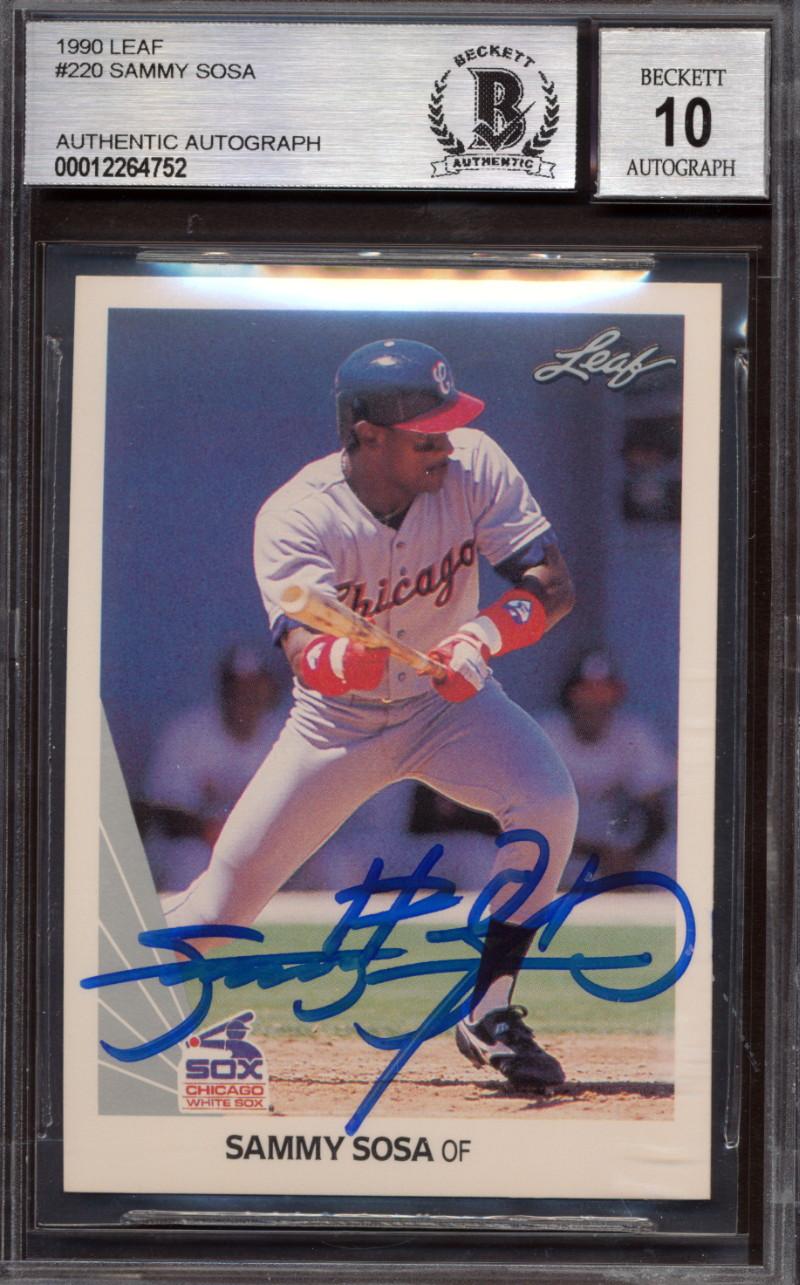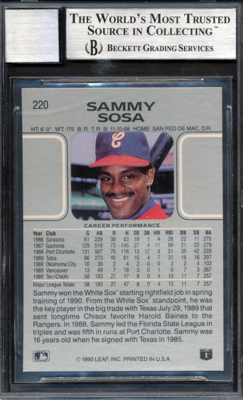 Sammy Sosa Signed 1990 Leaf #220 RC (BGS | Autograph Graded 10)