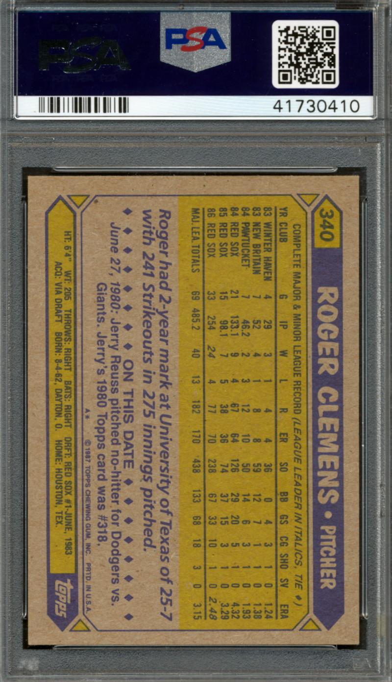 Roger Clemens Signed 1987 Topps #340 (PSA 9 | Auto 9)