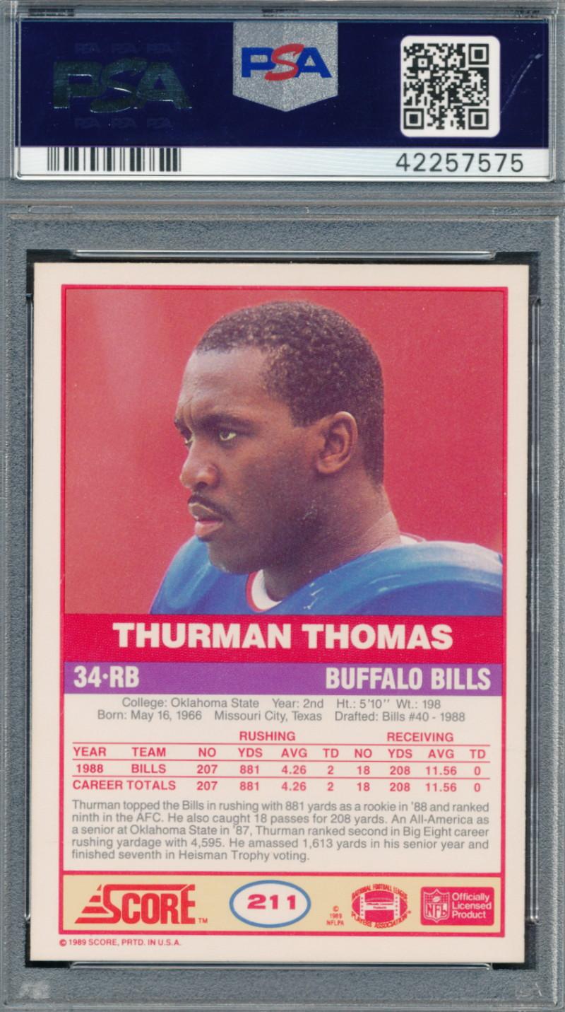 Thurman Thomas Signed 1989 Score #211 RC Inscribed "HOF 07" (PSA)