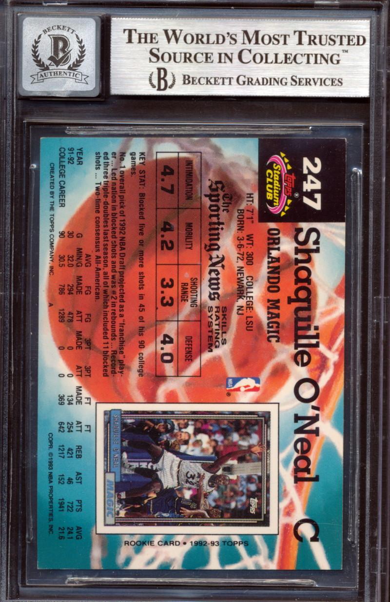 Shaquille O'Neal Signed 1992-93 Stadium Club #247 RC (BGS | Autograph Graded 10)