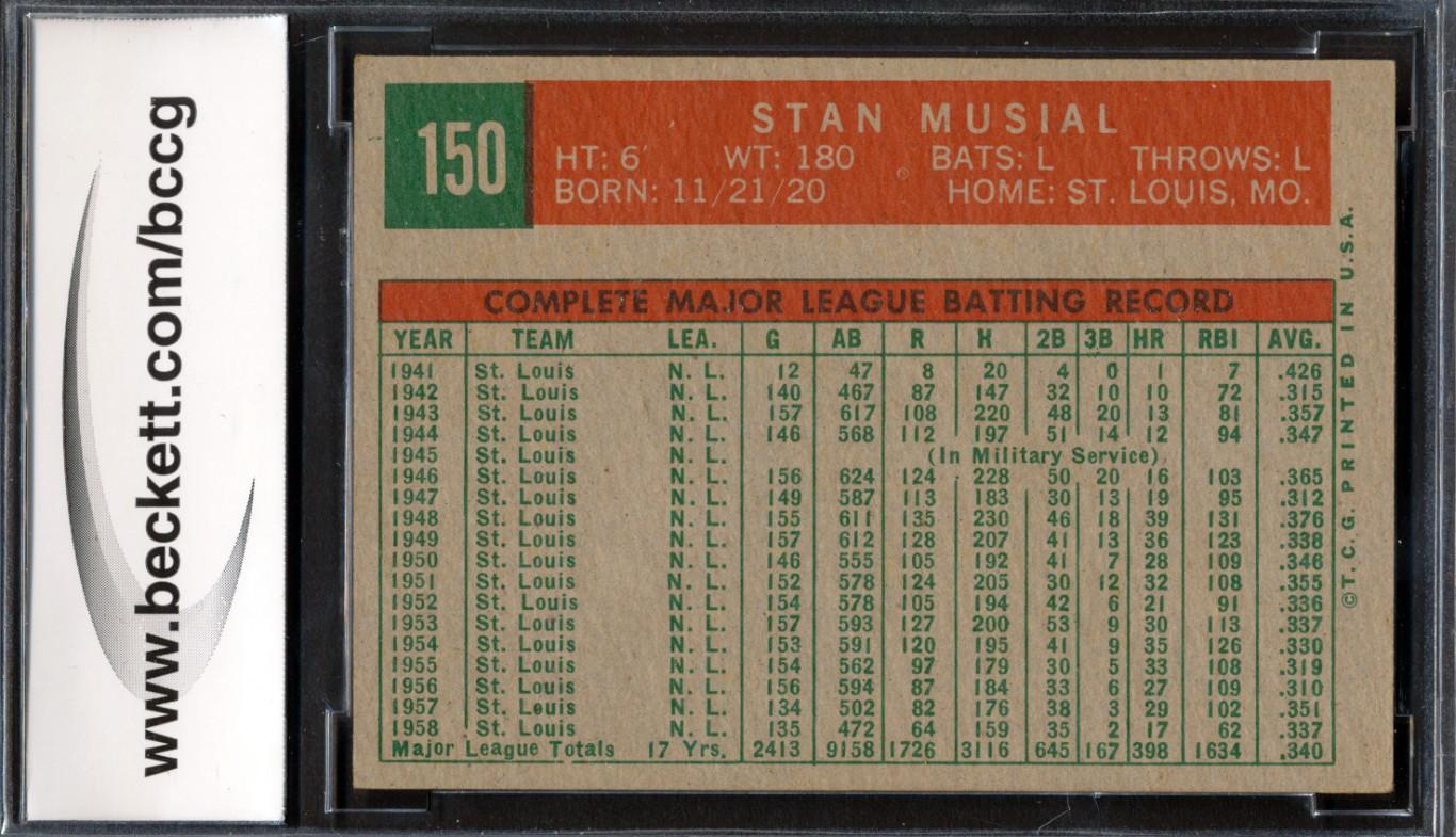 Stan Musial 1959 Topps #150 (BCCG 8)