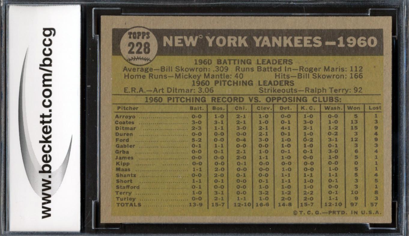 New York Yankees 1961 Topps #228 Team Card (BCCG 9)