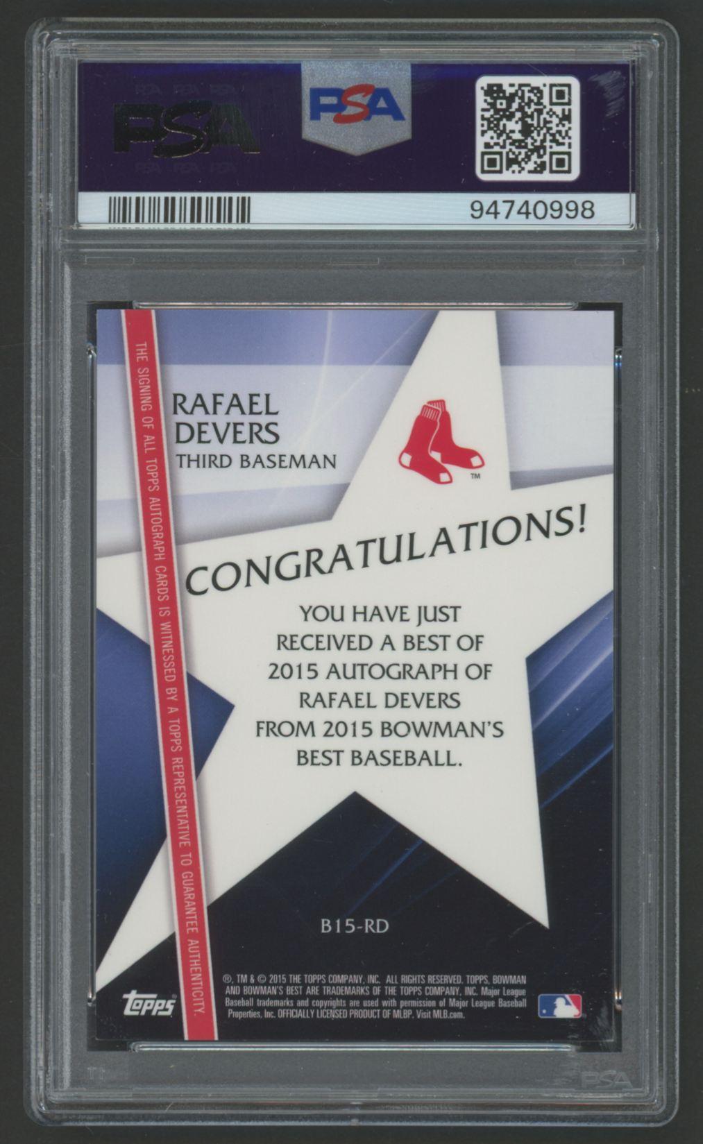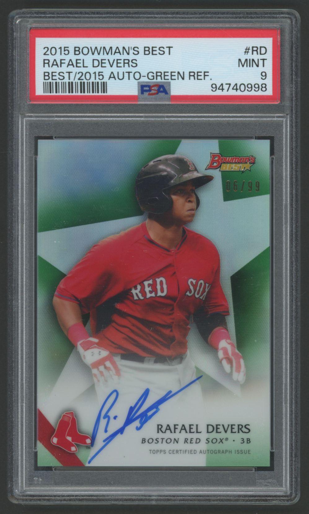 Rafael Devers 2015 Bowman's Best Best of '15 Autographs Green Refractors #B15RD #6/99 (PSA 9)