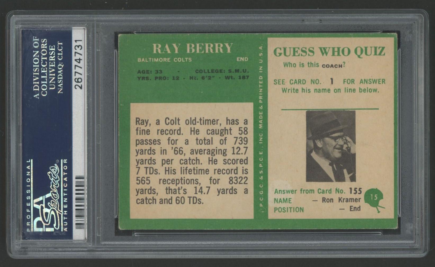 Raymond Berry Signed 1966 Philadelphia #15 (PSA)