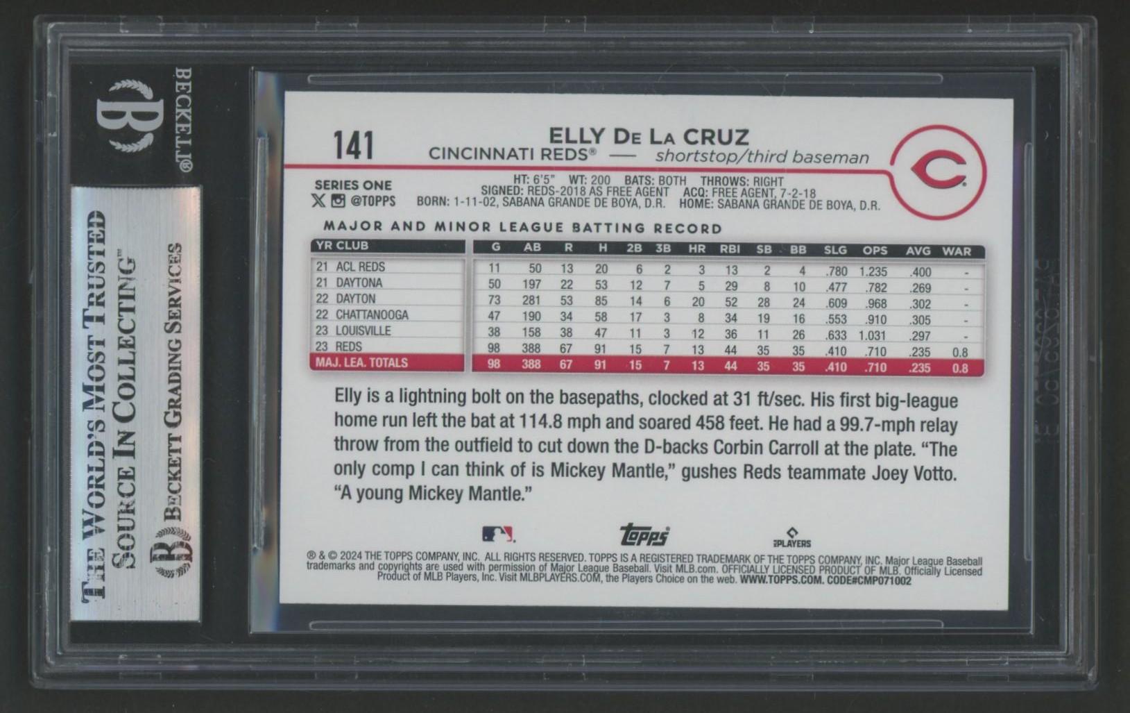 Elly De La Cruz Signed 2024 Topps #141 RC (BGS)