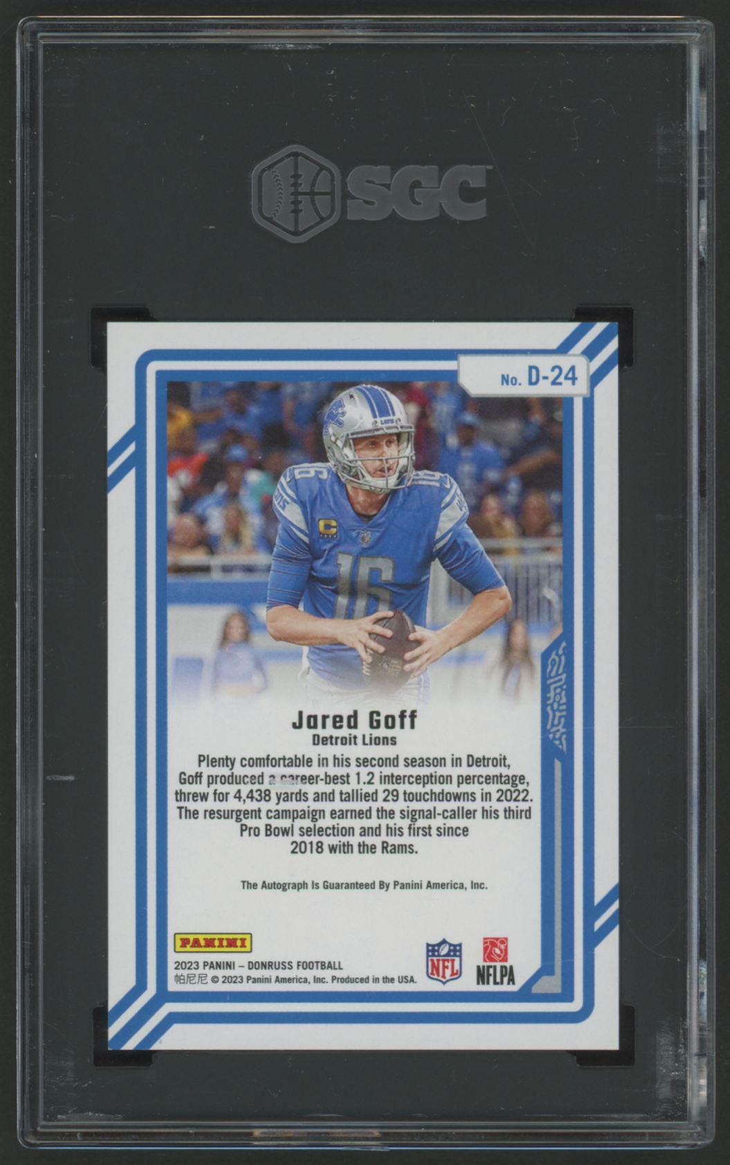 Jared Goff 2023 Donruss Dominators Autographs #24 #297/299 (SGC 9 | Auto 10)
