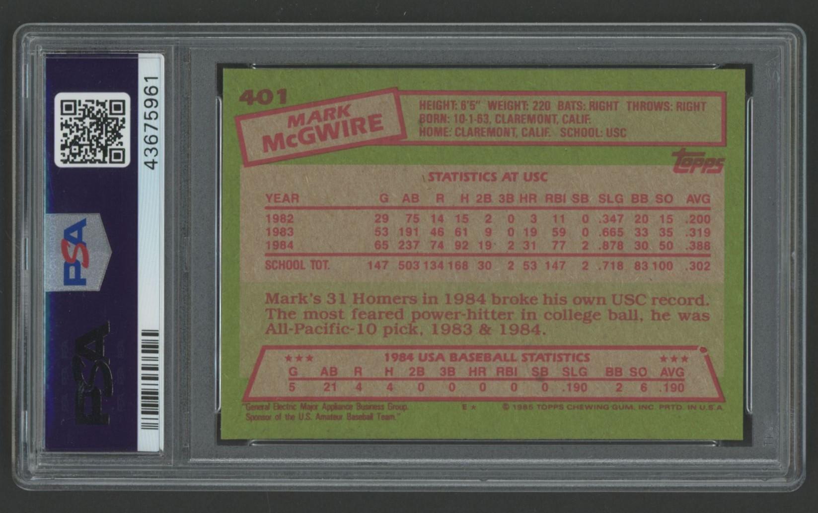 Mark McGwire 1985 Topps #401 RC (PSA 8)