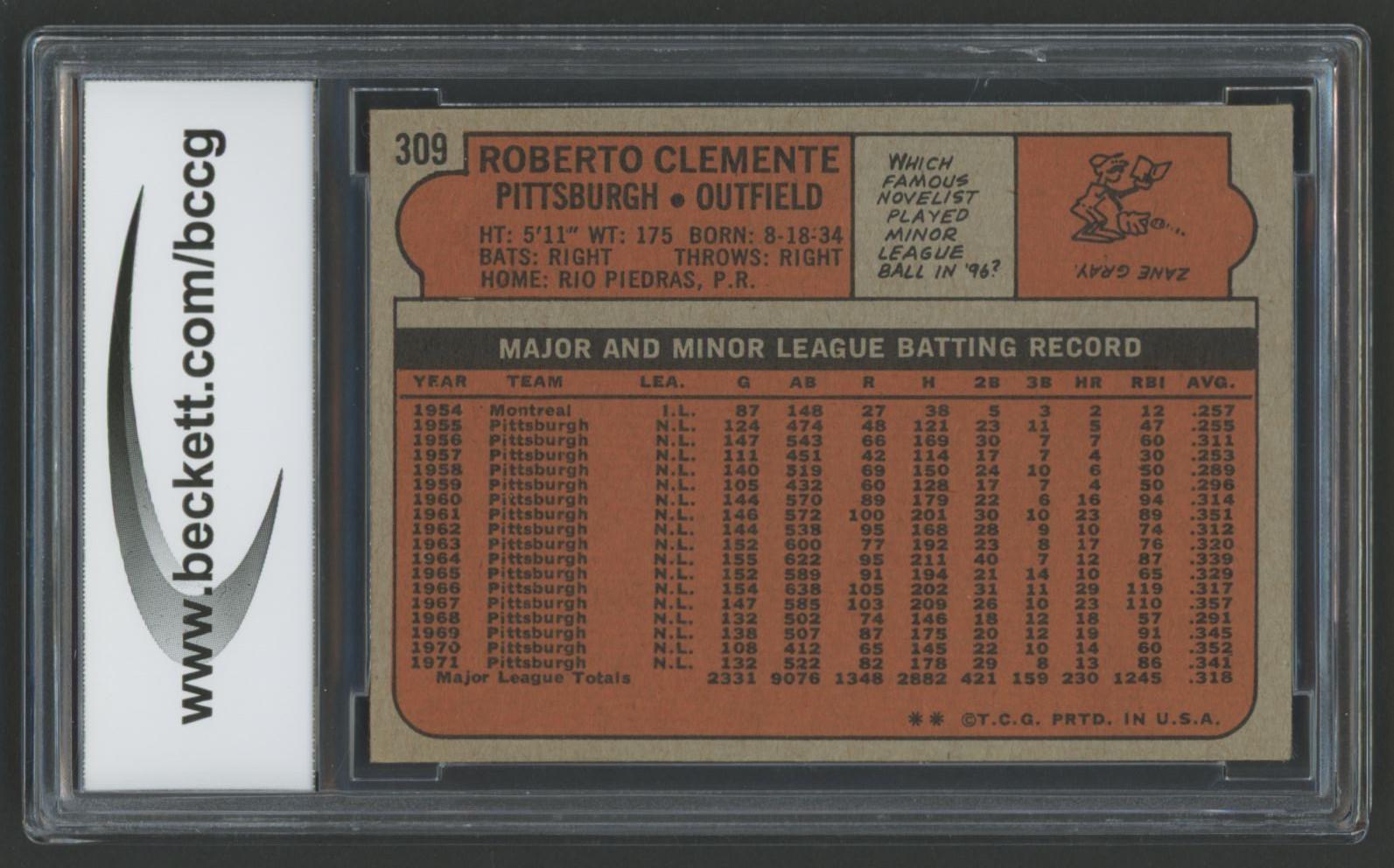Roberto Clemente 1972 Topps #309 (BCCG 9)
