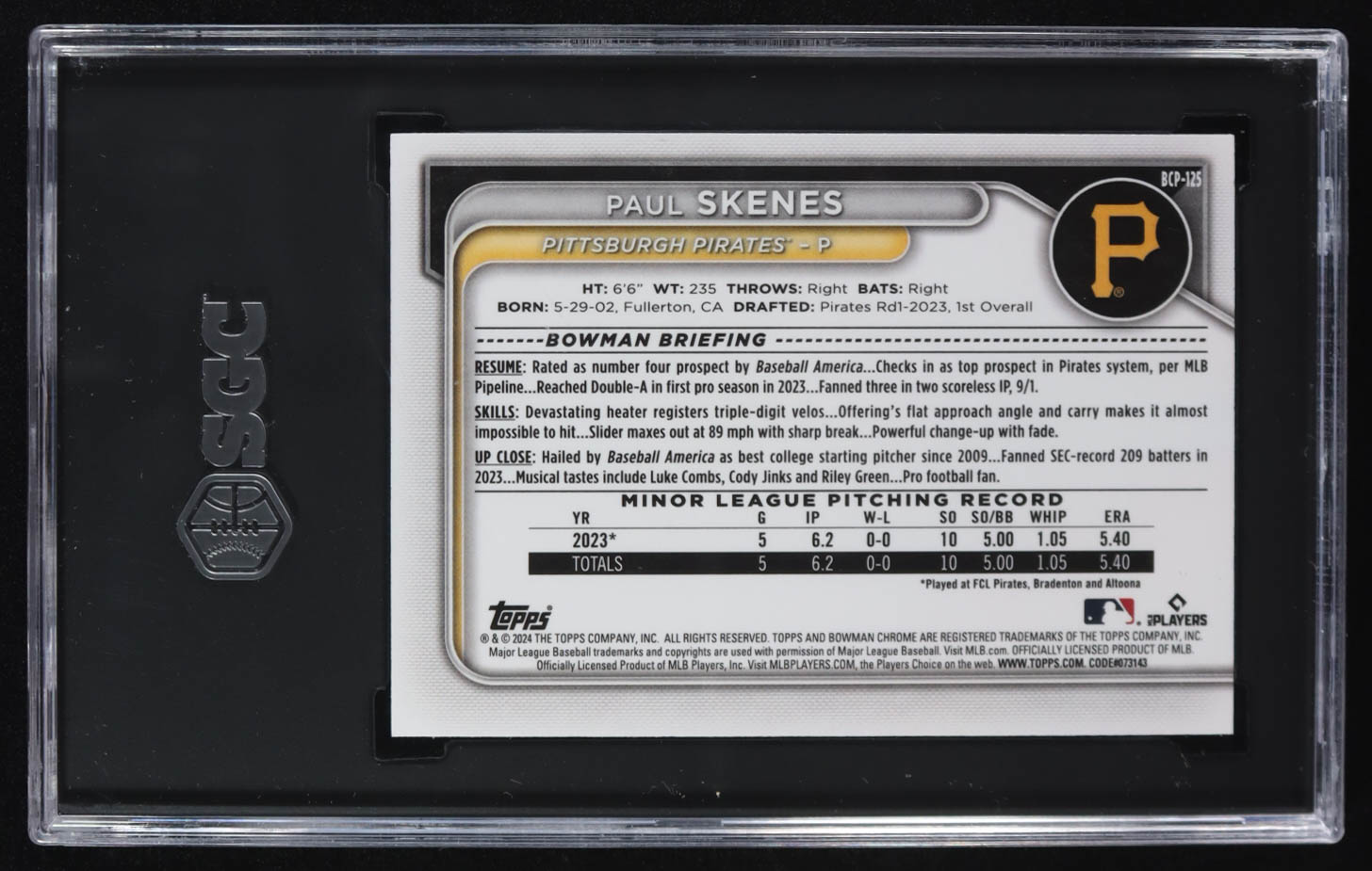 Paul Skenes 2024 Bowman Chrome Prospect #BCP-125 RC (SGC 9.5)