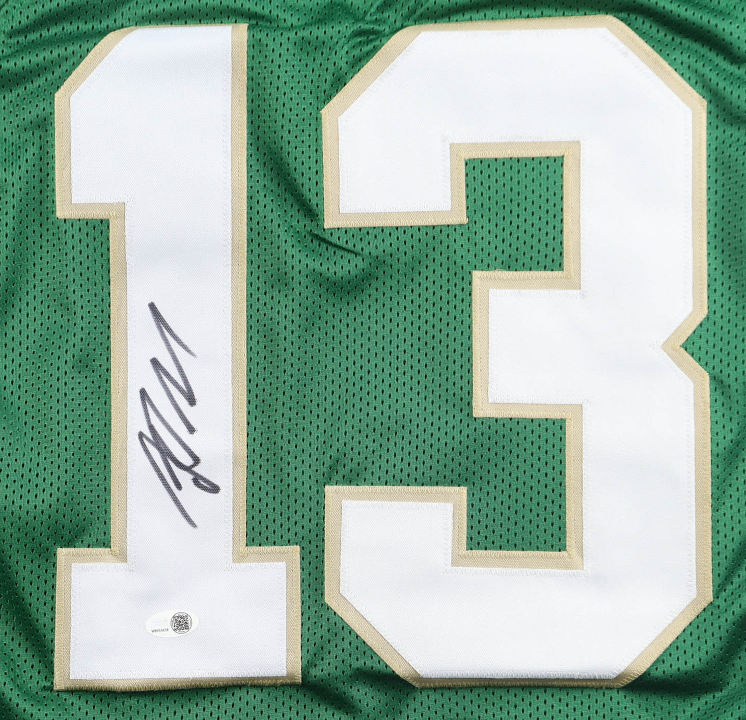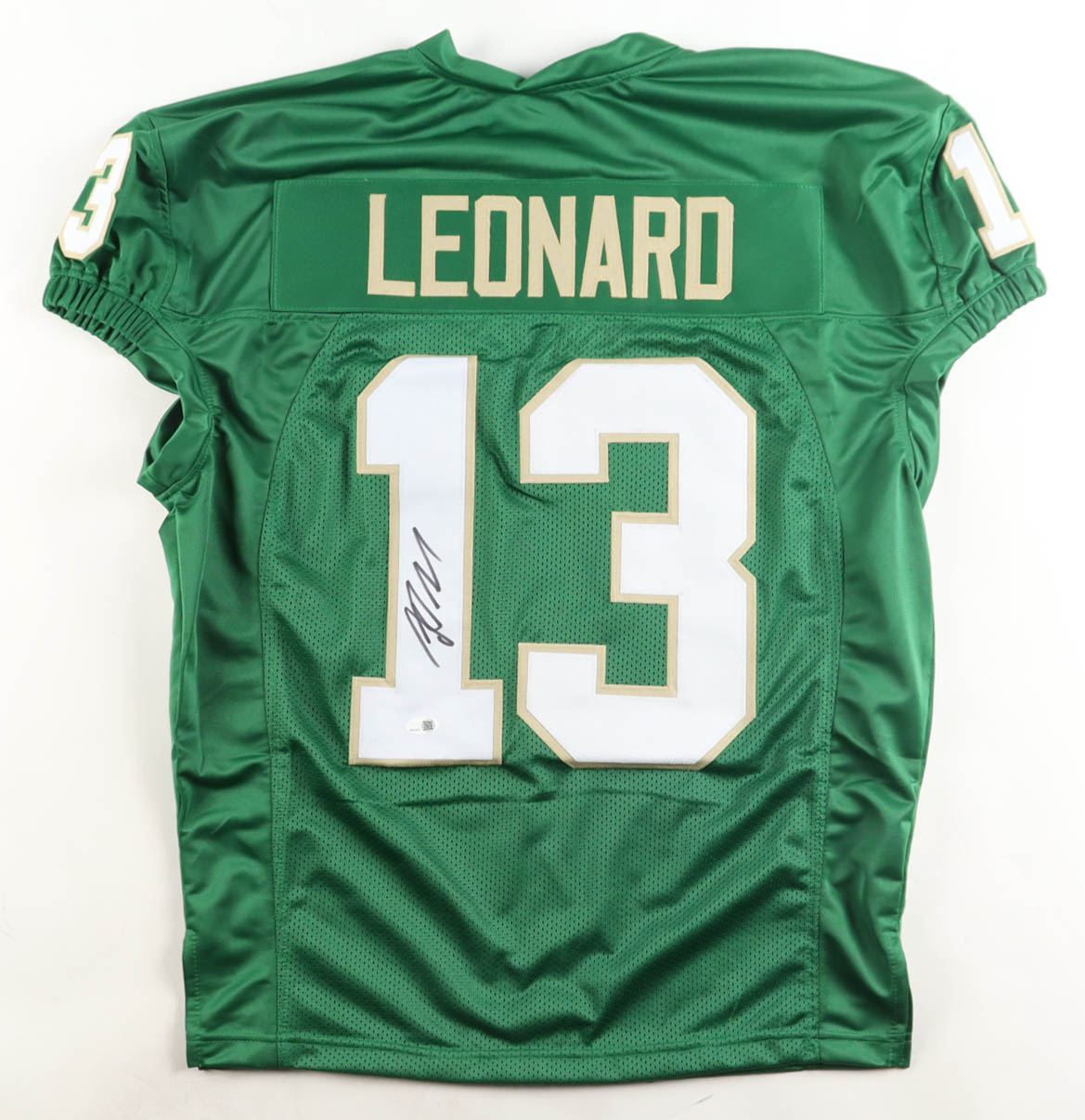 Custom jersey with everything sewn on, size XL. Hand-signed by Riley Leonard.