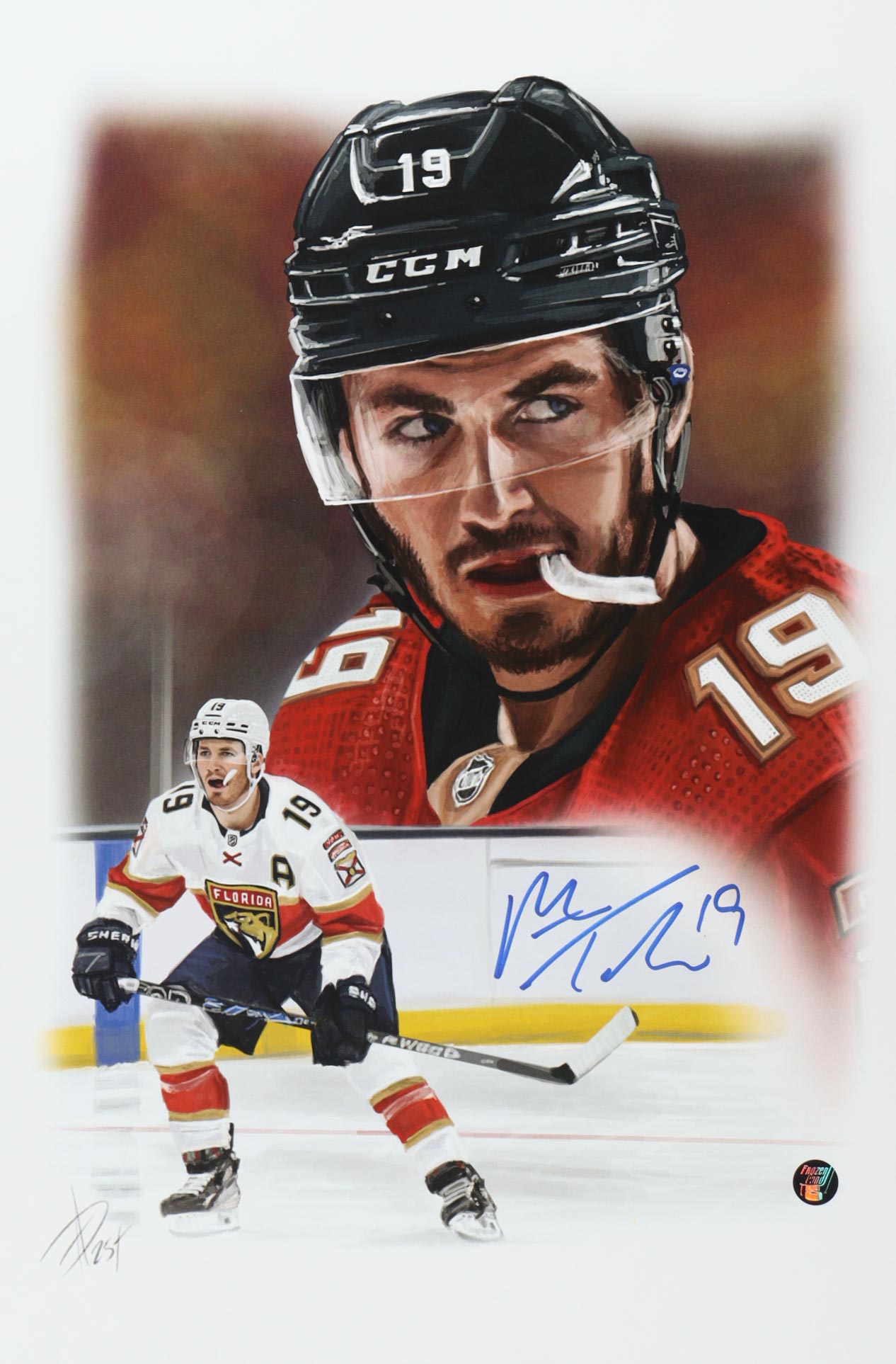 Lithograph measures approximately 12" x 18" in size. Hand-signed by Matthew Tkachuk (Florida Panthers). Has also been signed by the artist Alex Douglas. Limited edition numbered #3/4.