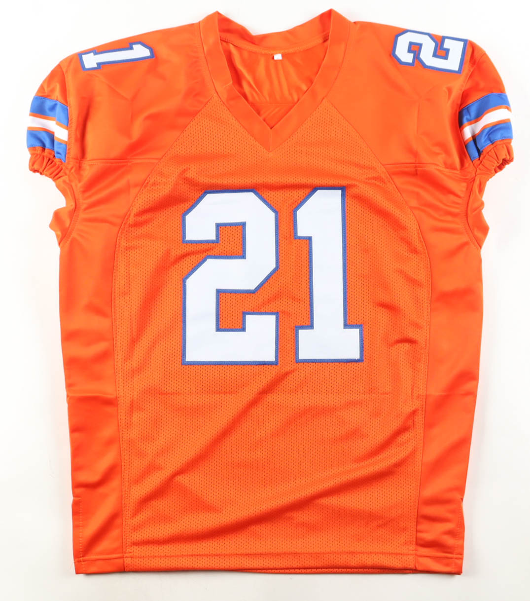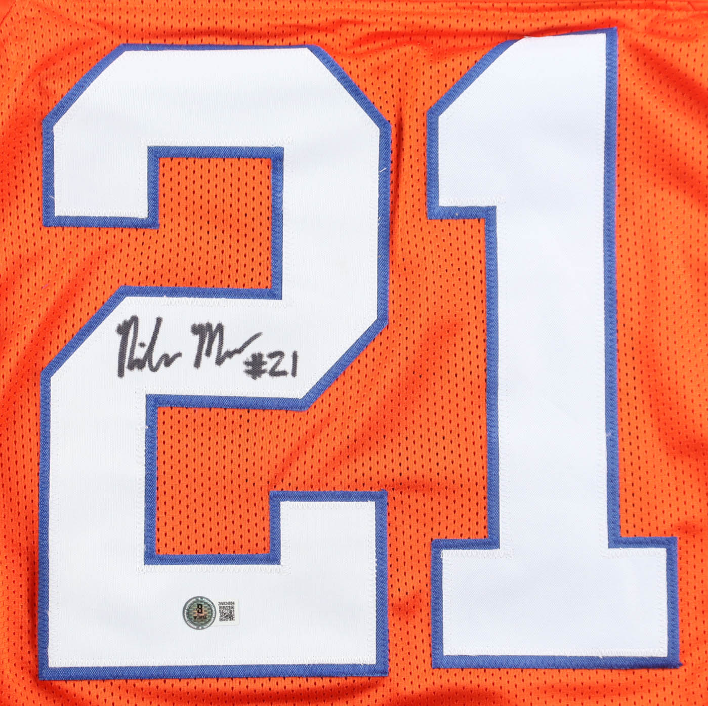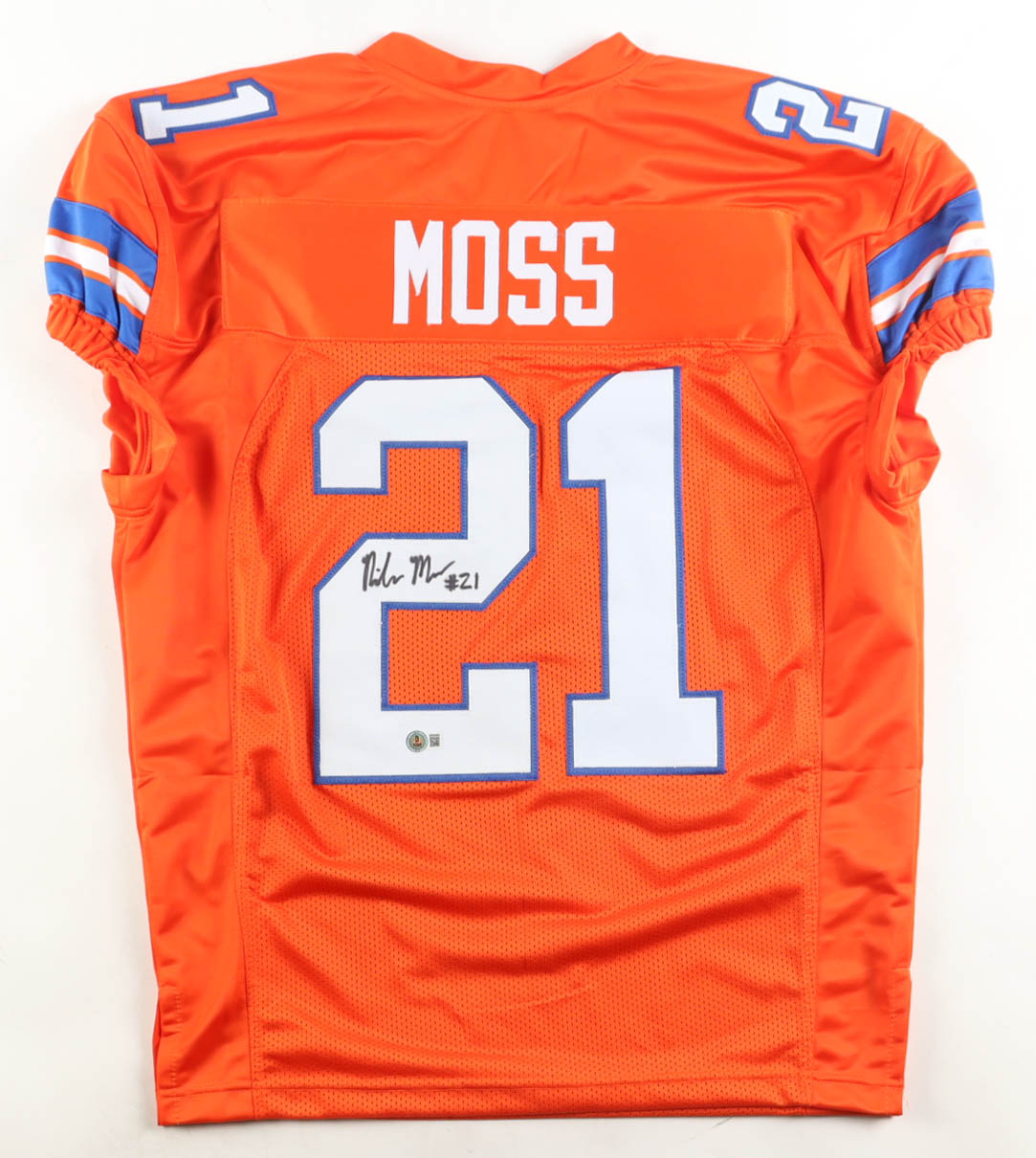Custom jersey with everything sewn on, size XL. Hand-signed by Riley Moss. Please note, the signature has bled.