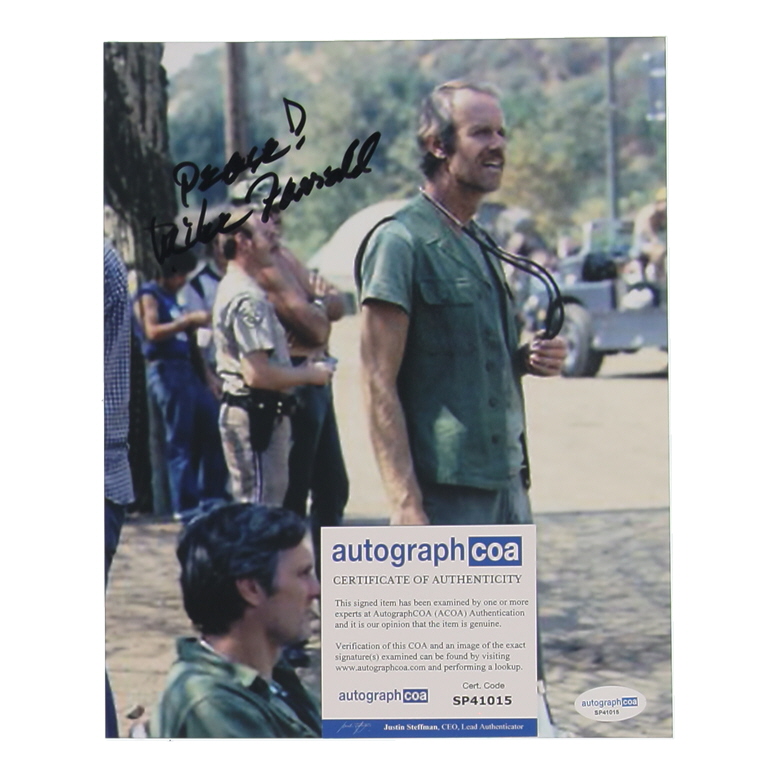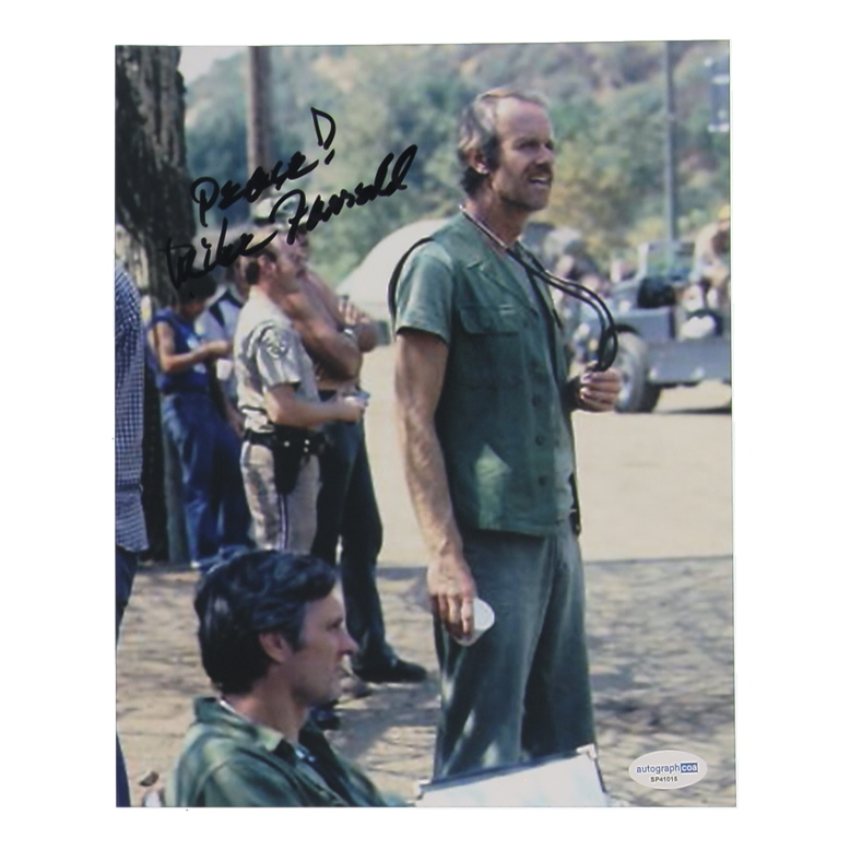 Photo measures 8" x 10" in size and has been hand-signed and inscribed by Mike Farrell.