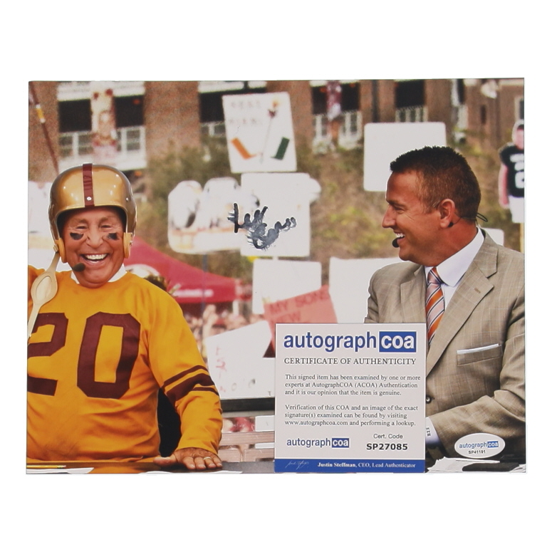 Photo measures 8" x 10" in size and has been hand-signed by Lee Corso. Please note, the signature is smudged.