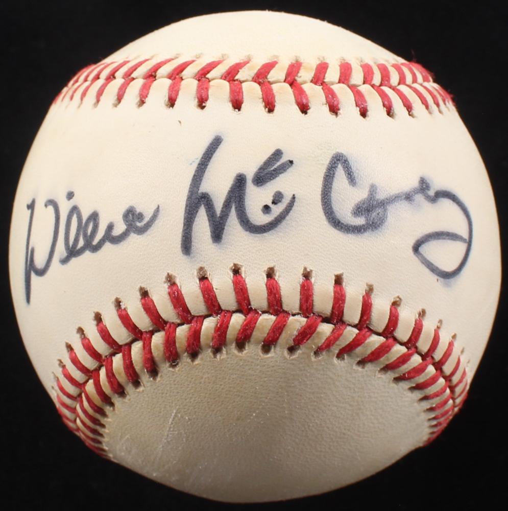 Rawlings Official National League Baseball. Hand-signed by Willie McCovey (D. 2018, San Fransisco Giants, HOF). Please note that the display case and Giants Logo pin are included in the listing, see photos for more details on condition of item.