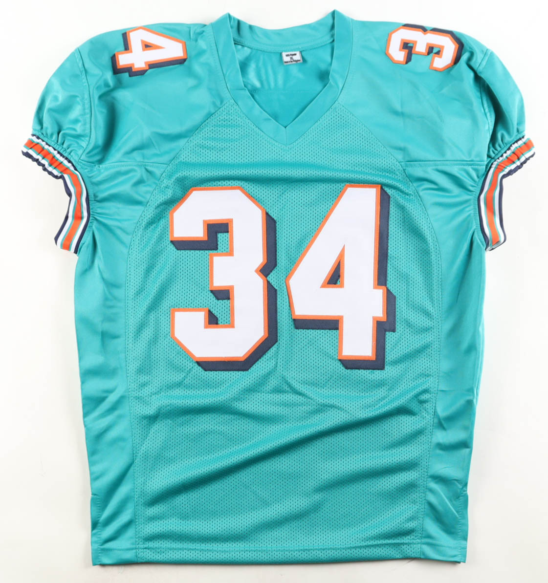 Custom jersey with everything sewn on, size XL. Hand-signed by Ricky Williams. Please note, glue is visible through the reverse number.